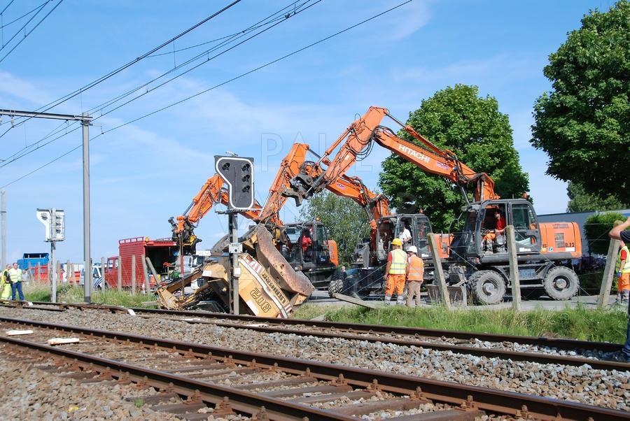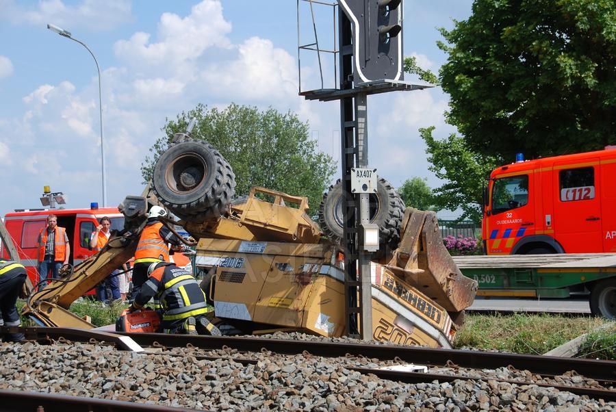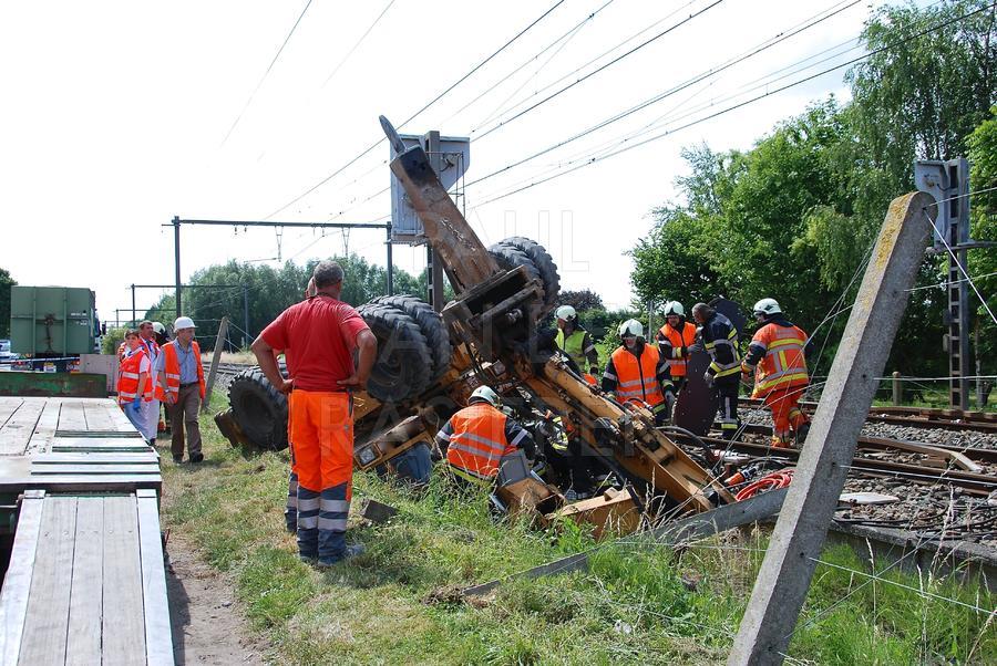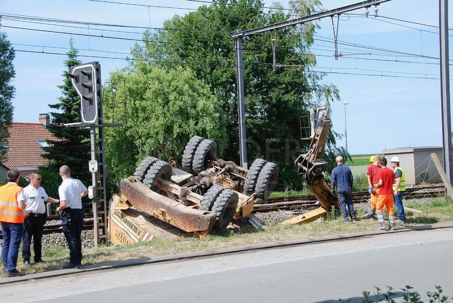 In Wortegem-Petegem kantelde een graafmachine toen die op een vrachtwagen wou rijden. De vrachtwagen stond net naast de sporen van de lijn Kortrijk-Oudenaarde. De geknelde bestuurder werd door de Oudenaardse Brandweer bevrijd. Gelukkig vielen er geen gewonden. Het rechttrekken van de graafmachine vergde nog heel wat tijd, tijdens dewelke het spoorverkeer slechts een spoor kon gebruiken.