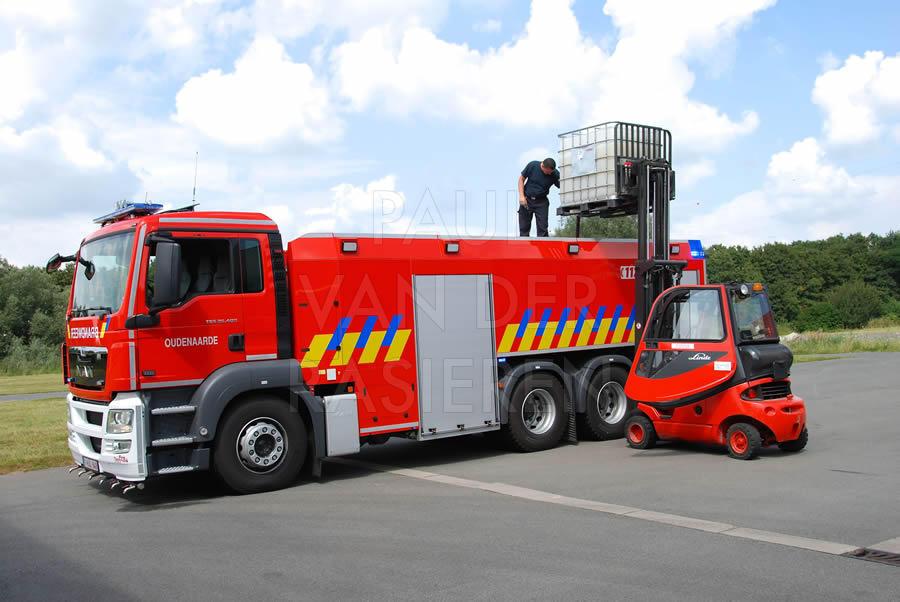 Donderdag 7 augustus werd de nieuwe tankwagen bij de Oudenaardse Brandweer afgeleverd. De nieuwe tankwagen kan 12.000 liter water vervoeren, samen met 1.000 liter schuimvormend middel en 200 liter detergent voor het reinigen van vervuild wegdek. Vooraan bevindt zich een sproeibalk voor het vlot reinigen van wegoppervlaktes.