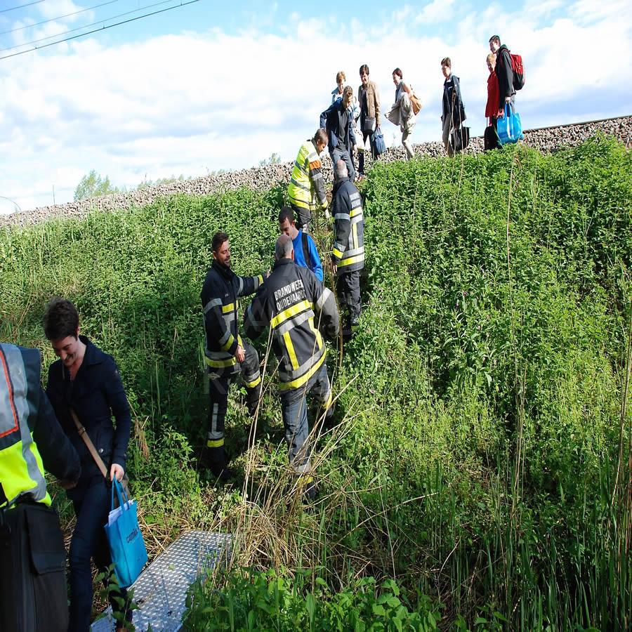 Door technische problemen had de L-trein Oudenaarde-Kortrijk net na het verlaten van Oudenaarde plots onvoldoende trekkracht. Het treinstel stond op de hoge berm stil. De brandweer van Oudenaarde kwam langs om de passagiers te ontzetten vanuit de hoge trein tot op de begane grond onderaan de berm.