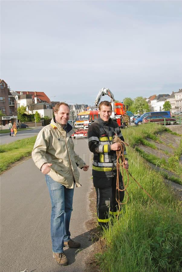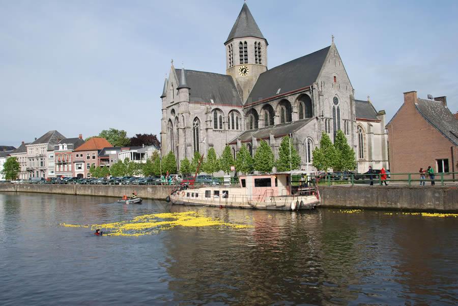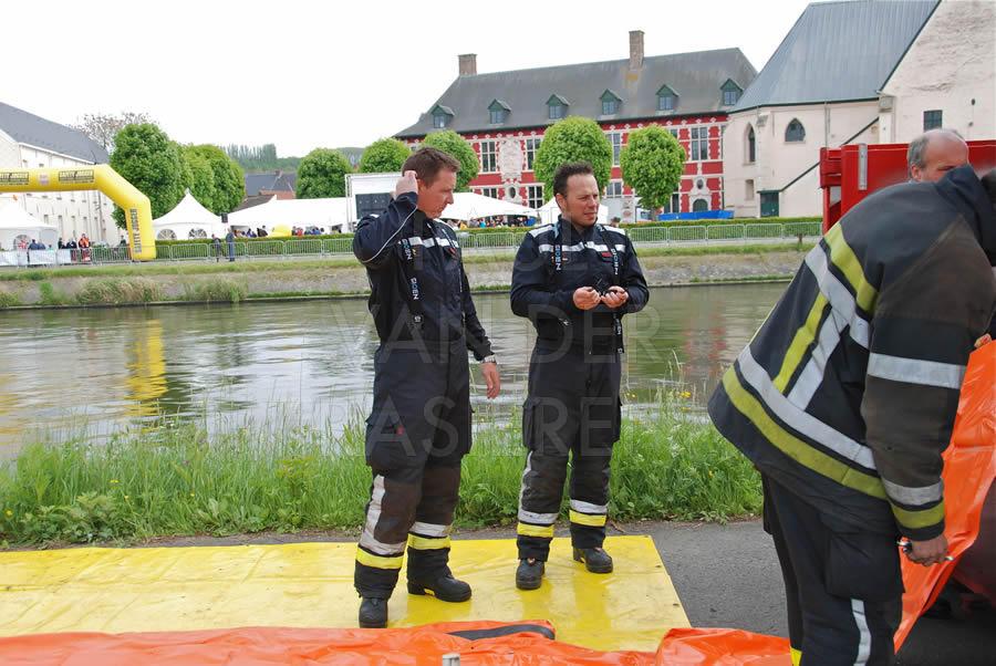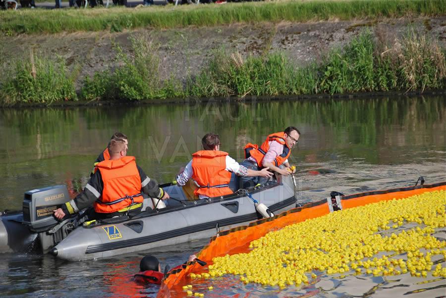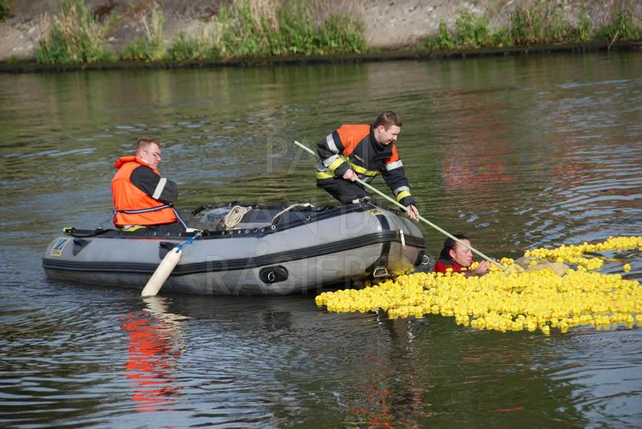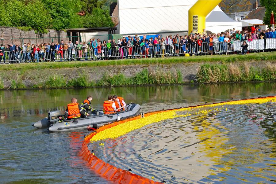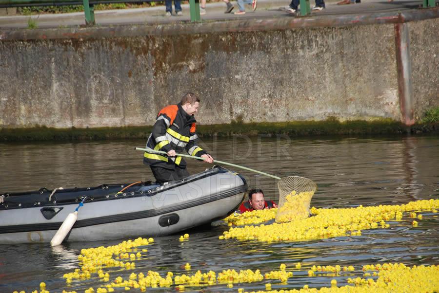 De brandweermannen staan bekend om hun goed hart. Naar aanleiding van een eendenrace op de Schelde voor het goede doel hielpen de Oudenaardse brandweermannen graag een handje mee.