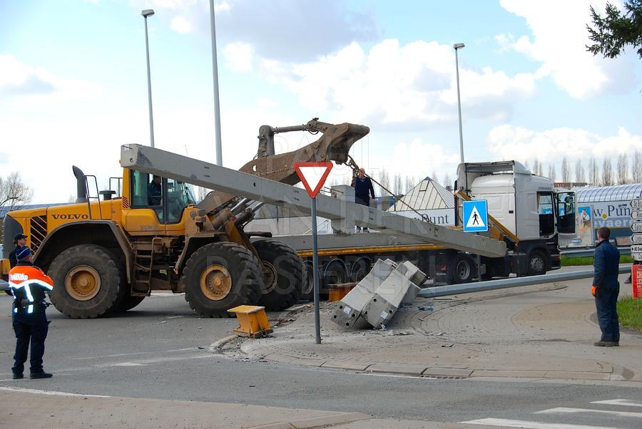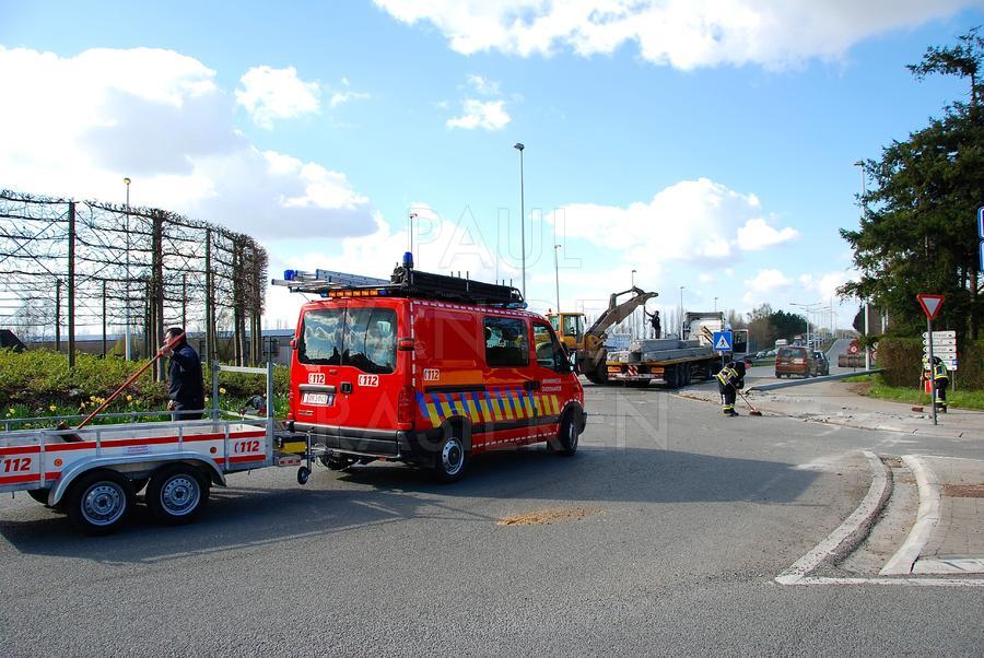 Op het rond punt inn Leupegem verloor een vrachtwagen betonnen pijlers. Bij het verlaten van het verkeersknooppunt was de lading beginnen schuiven en op de rijweg terecht gekomen. Gelukkig waren er geen gewonden, maar de verkeershinder rondom Oudenaarde heeft meerdere uren geduurd. De fabrikant kwam ter plaatse met zwaar materiaal om de lasten te verplaatsen. De Oudenaardse Brandweer zorgde voor het opruimen van de openbare weg en het veilig stellen van vracht en verkeer.