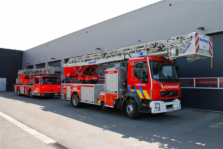 Stad Oudenaarde kocht onlangs een nieuwe ladderwagen aan voor de Oudenaardse brandweer. De ladderwagen bestaat uit een Magirus ladderbouw op een Volvo chassis. De stad besloot een compacte chasis aan te kopen om ook op de vele kleine wegen rond de stad vlot te kunnen worden ingezet. Er werd met de nieuwe vrachtwagen al geoefend en kennis gemaakt.