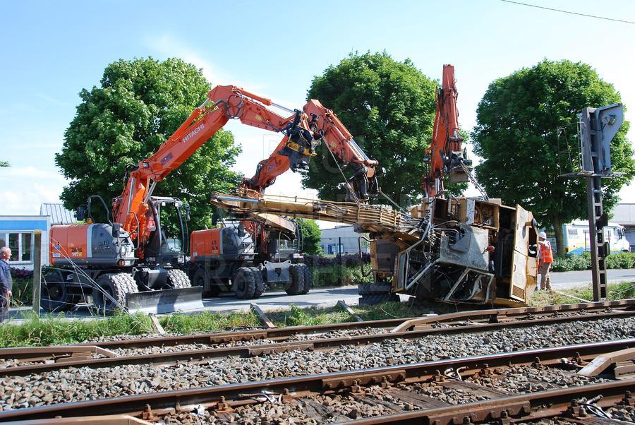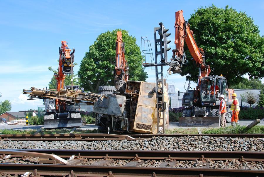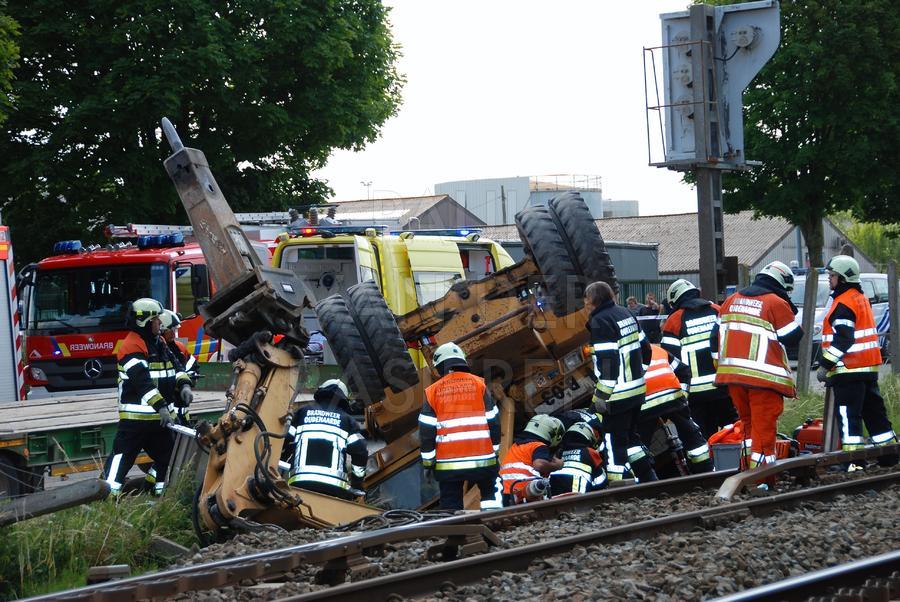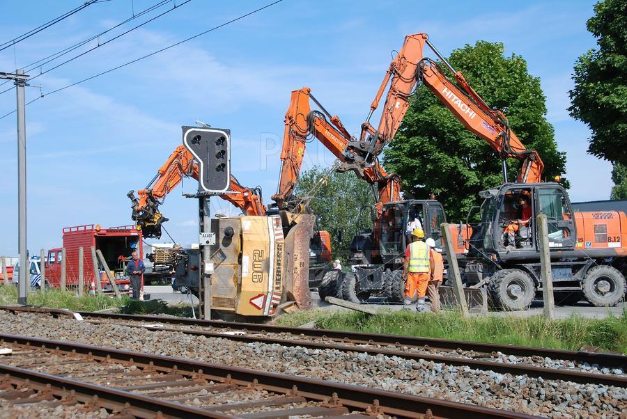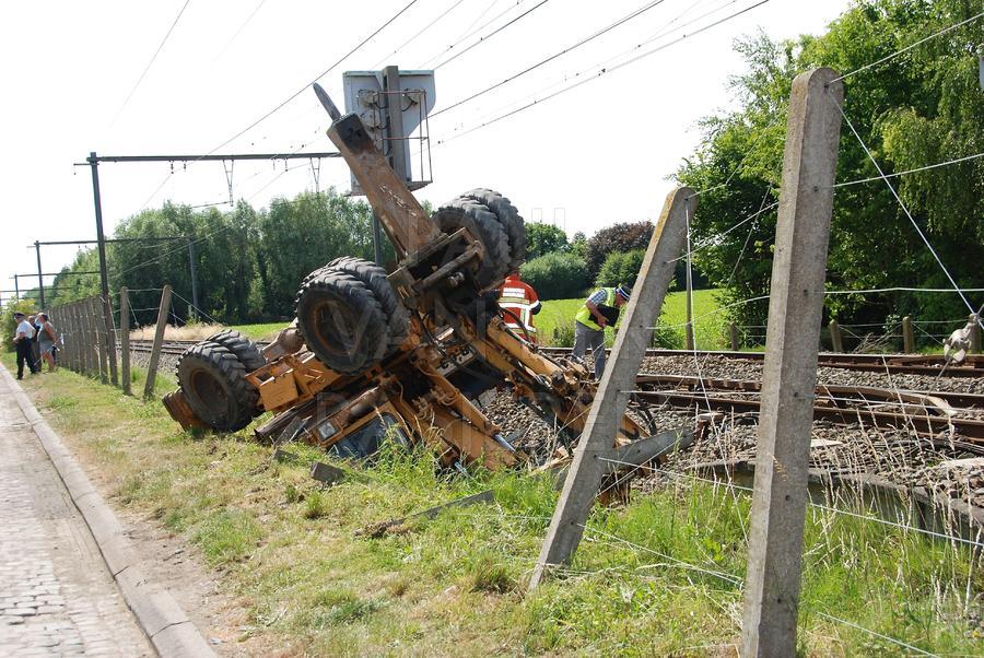 In Wortegem-Petegem kantelde een graafmachine toen die op een vrachtwagen wou rijden. De vrachtwagen stond net naast de sporen van de lijn Kortrijk-Oudenaarde. De geknelde bestuurder werd door de Oudenaardse Brandweer bevrijd. Gelukkig vielen er geen gewonden. Het rechttrekken van de graafmachine vergde nog heel wat tijd, tijdens dewelke het spoorverkeer slechts een spoor kon gebruiken.