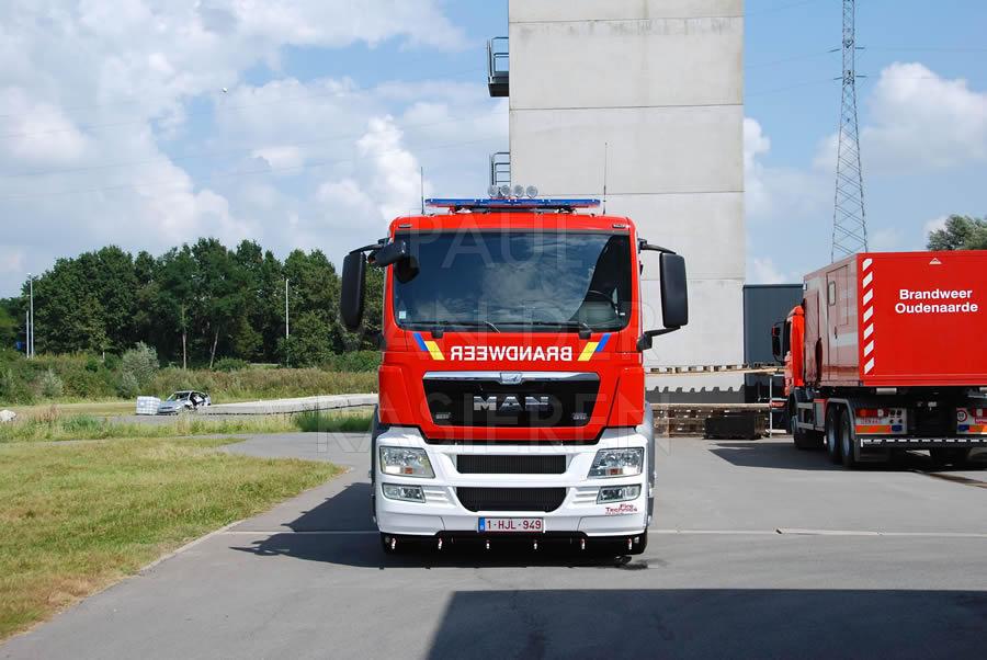 Donderdag 7 augustus werd de nieuwe tankwagen bij de Oudenaardse Brandweer afgeleverd. De nieuwe tankwagen kan 12.000 liter water vervoeren, samen met 1.000 liter schuimvormend middel en 200 liter detergent voor het reinigen van vervuild wegdek. Vooraan bevindt zich een sproeibalk voor het vlot reinigen van wegoppervlaktes.