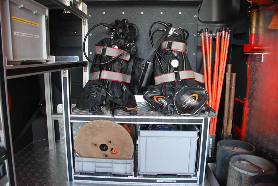Ook de eerder geleverde duikerswagen is intussen ook ingericht en in gebruik genomen. De inrichting gebeurde volledig door de brandweermannen.