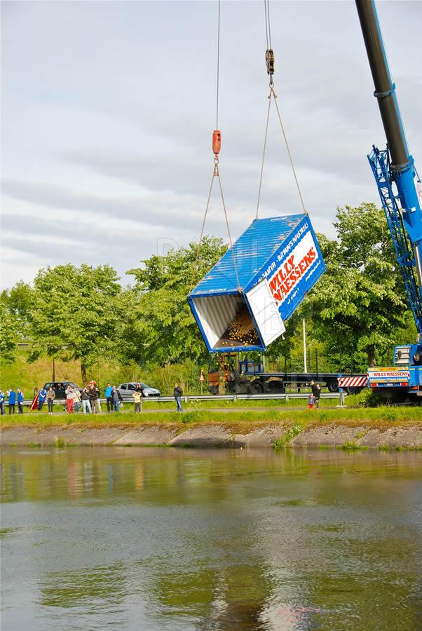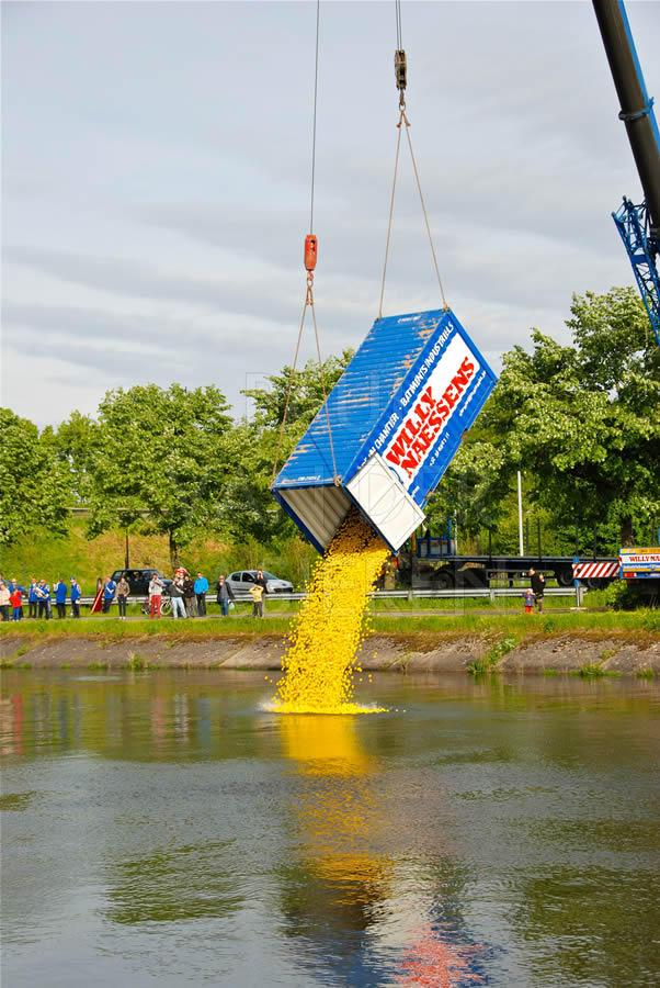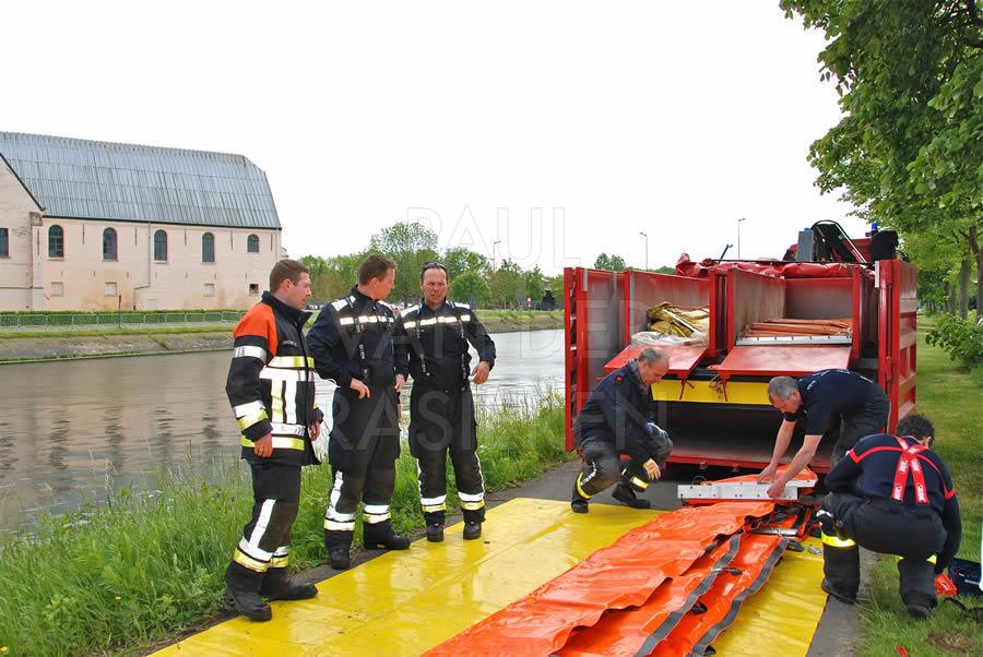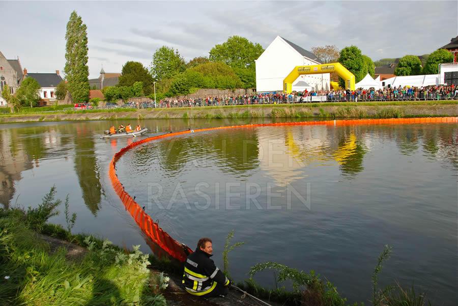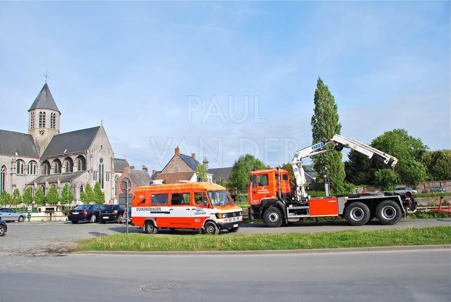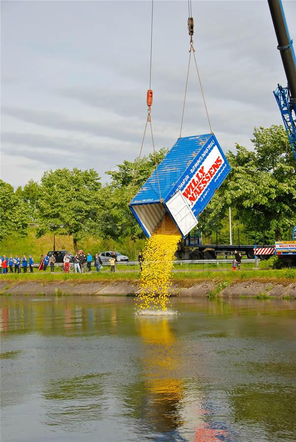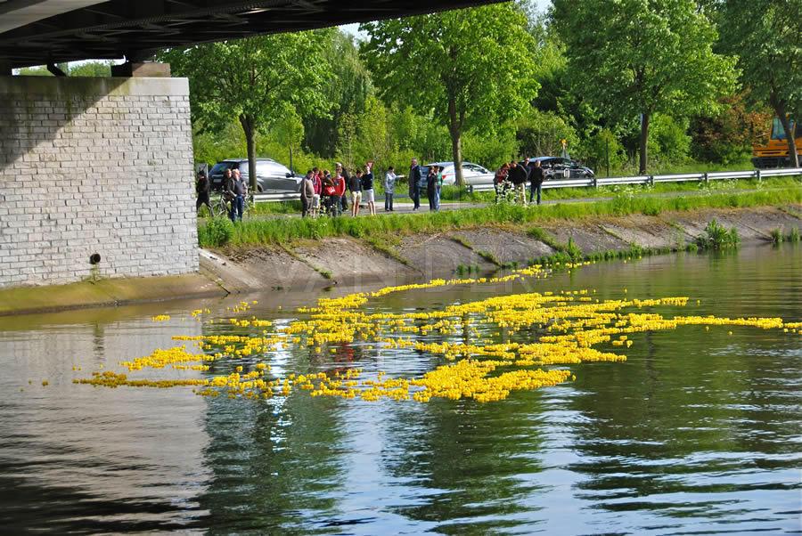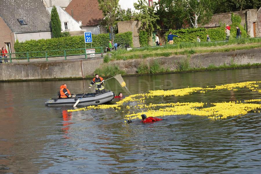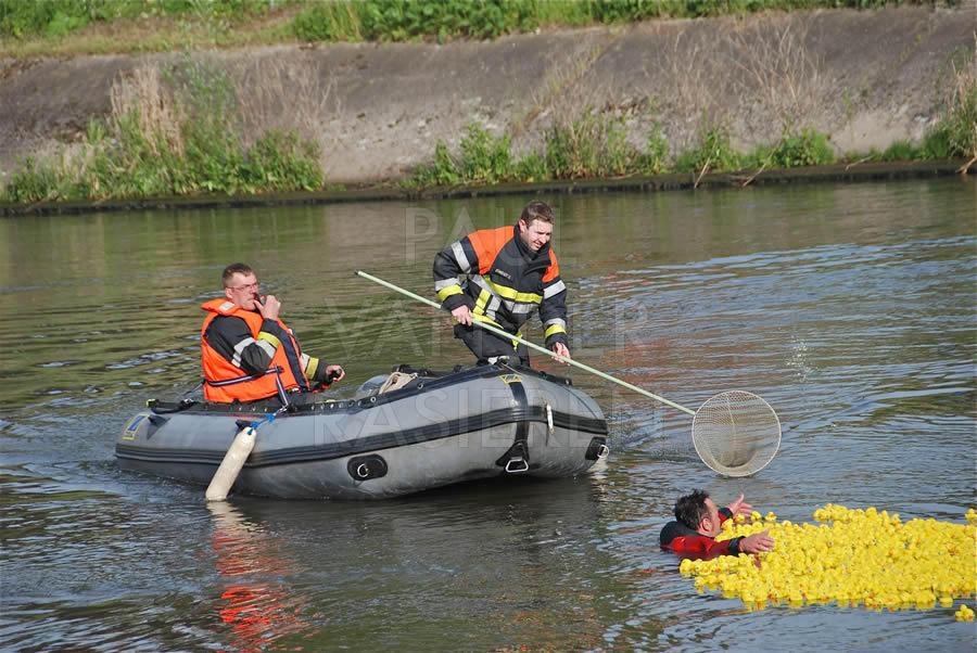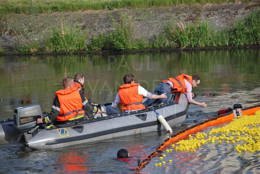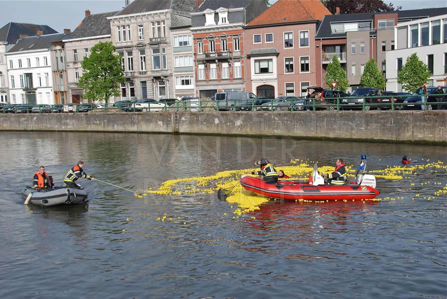 De brandweermannen staan bekend om hun goed hart. Naar aanleiding van een eendenrace op de Schelde voor het goede doel hielpen de Oudenaardse brandweermannen graag een handje mee.