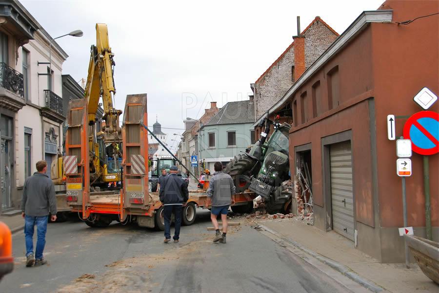Notice: session_start(): A session had already been started - ignoring in /home/lxxaqhcaq07o/domains/brandweeroudenaarde.be/html/index3.php on line 1 Tractor in gevel - Brandweer Oudeaarde