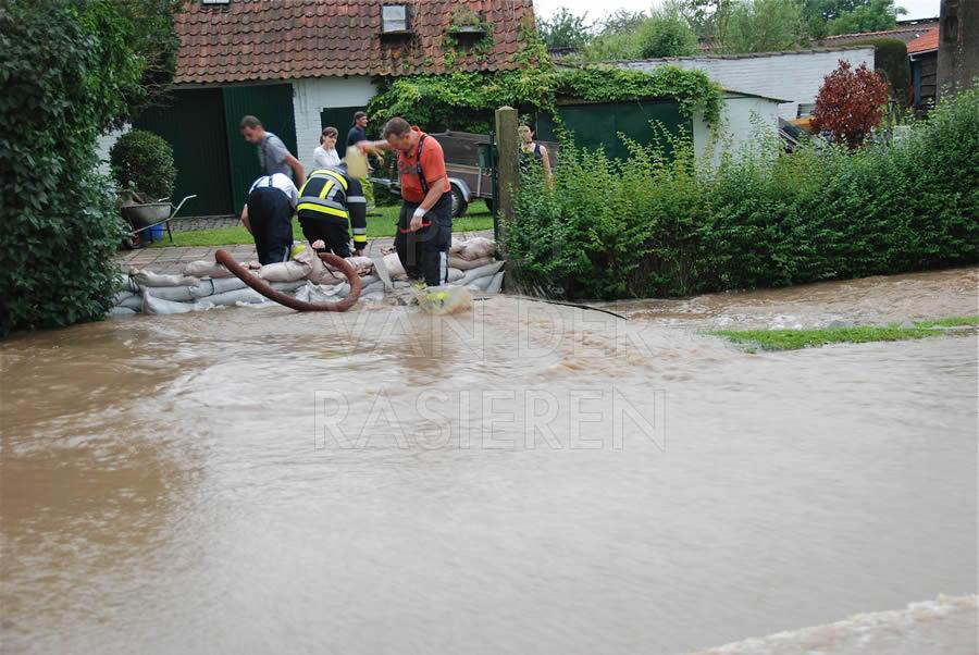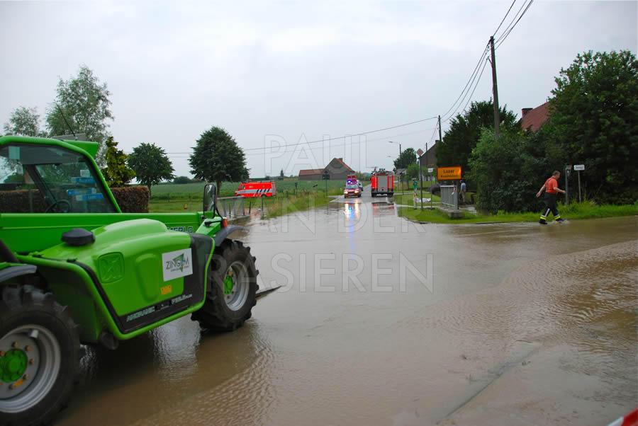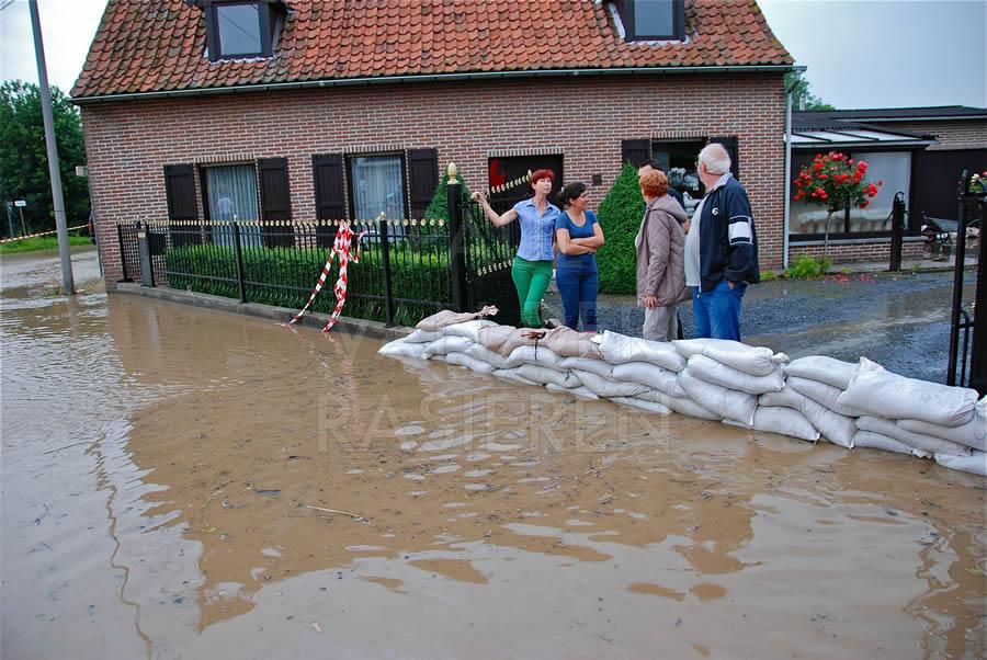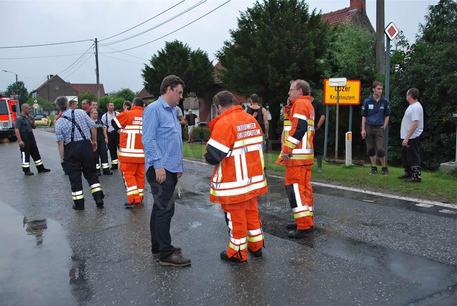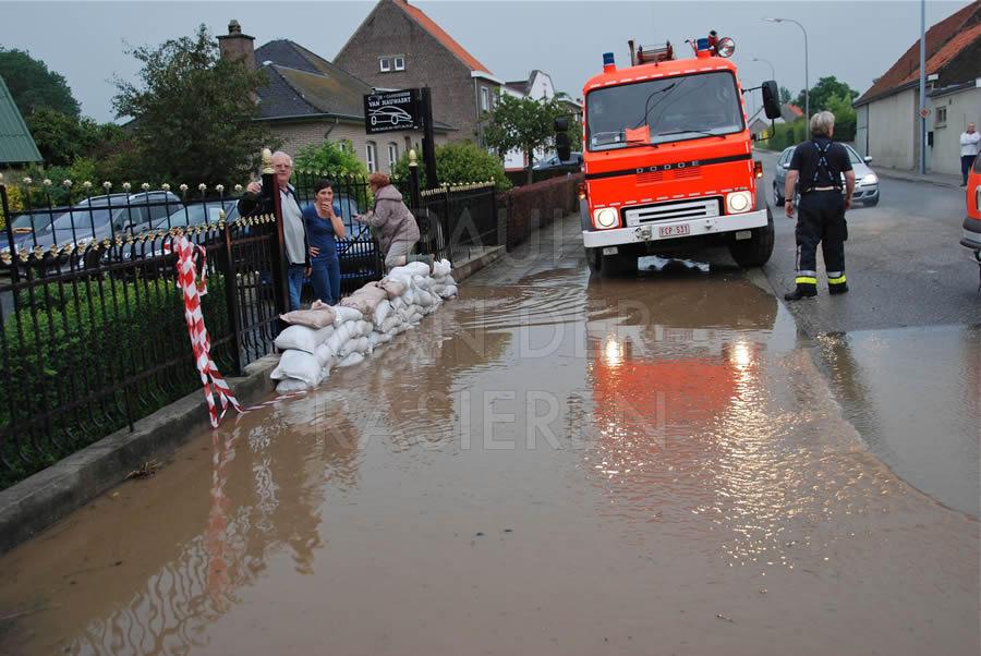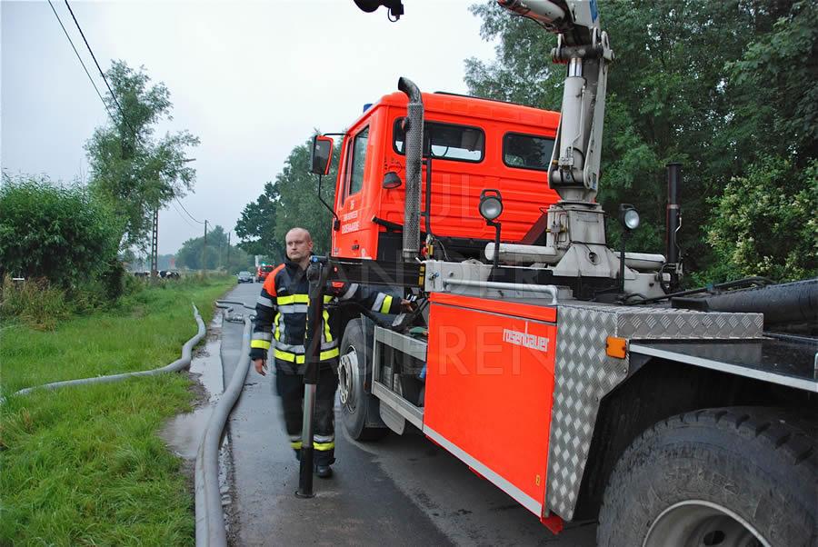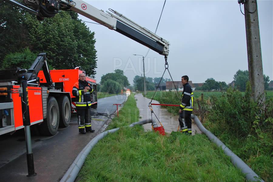 Op 5 juli zorgden hevige regenbuien mermaals voor wateroverlast op diverse plaatsen. Dankzij de ervaring van de korpsen en het nieuwe materiaal waarin de afgelopen jaren werd geïnvesteerd, konden ergere rampen voorkomen worden. Hier ziet u enkele beelden uit de Boeregemstraat in Zingem, net aan de grens met Kruishoutem. Zowel de korpsen van Oudenaarde als van Kruishoutem kwamen terplaatse met man en mocht om zo snel mogelijk de woningen te vrijwaren. Met zware pompen werden overvolle beken ontlast naar andere waterlopen. De nieuwe container met zware pompen en slangen bewees zeker zijn nut.